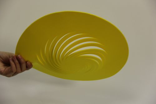 最終生產(chǎn)出的帽子,主體為明亮的黃色 EVA 泡棉,螺旋狀的鏤空內(nèi)襯結(jié)構(gòu)清晰可見(jiàn),造型獨(dú)特且富有層次感。從不同角度觀(guān)察,帽子既有著圓潤(rùn)的輪廓,又因鏤空呈現(xiàn)出靈動(dòng)的視覺(jué)效果,整體新穎、活潑,兼具創(chuàng)意與實(shí)用性。投入市場(chǎng)后,這款帽子憑借其獨(dú)特的設(shè)計(jì)和 EVA 泡棉內(nèi)襯帶來(lái)的良好質(zhì)感,受到了消費(fèi)者的廣泛關(guān)注與喜愛(ài),為客戶(hù)的品牌推廣起到了積極的作用,也成為了該創(chuàng)意設(shè)計(jì)公司的一款明星產(chǎn)品。